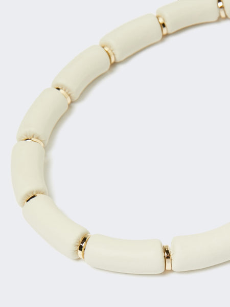 Choker necklace comprising perfectly regular geometric-shaped soft elements.
