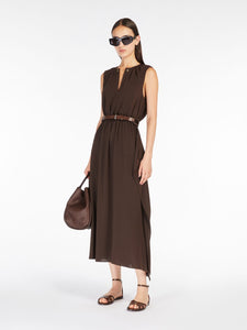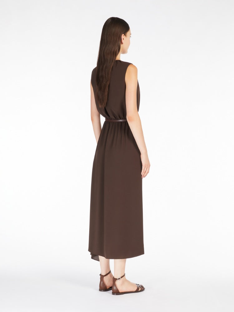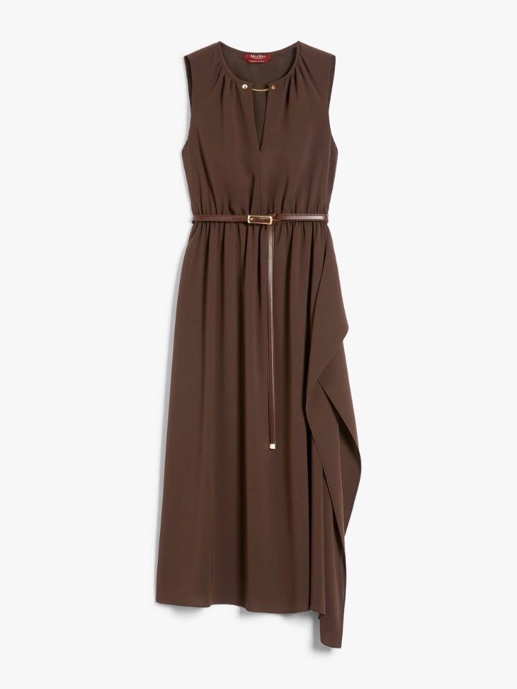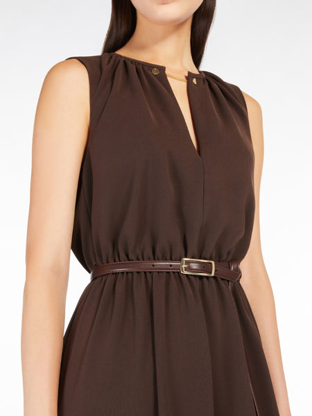 Dress fabric 73% triacetate, 27% polyester; lining 100% polyester; with belt in polyester with polyurethane coating.