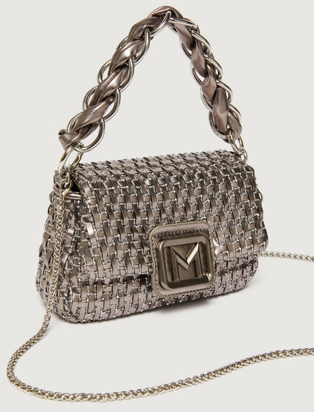 Handbag in polyester with polyurethane coating; lining in 100%polyester; joining thread 95% polyester, 5% elastane.