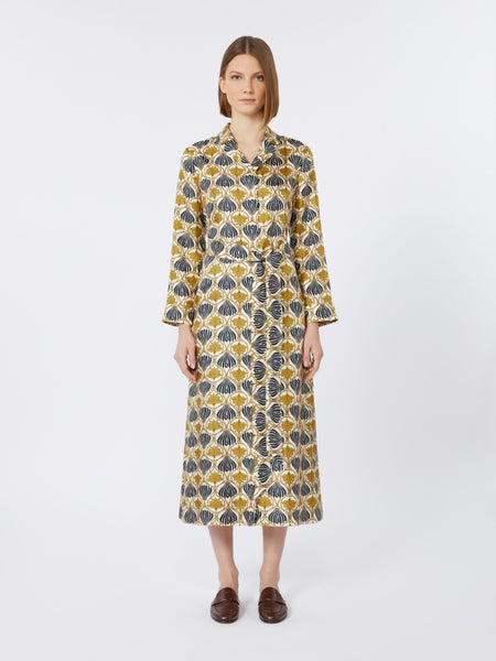 mustard printed silk kaftan dress