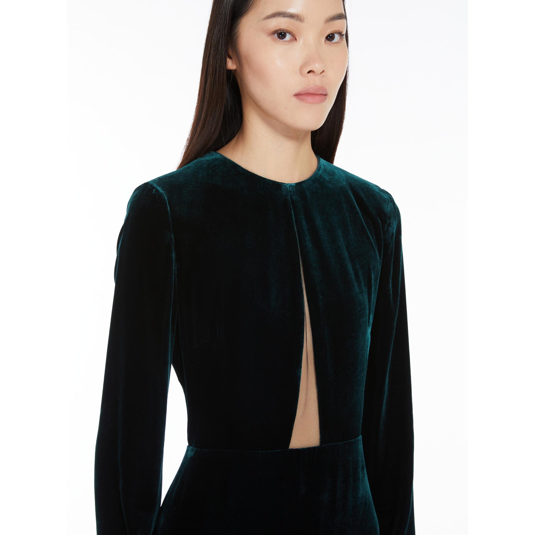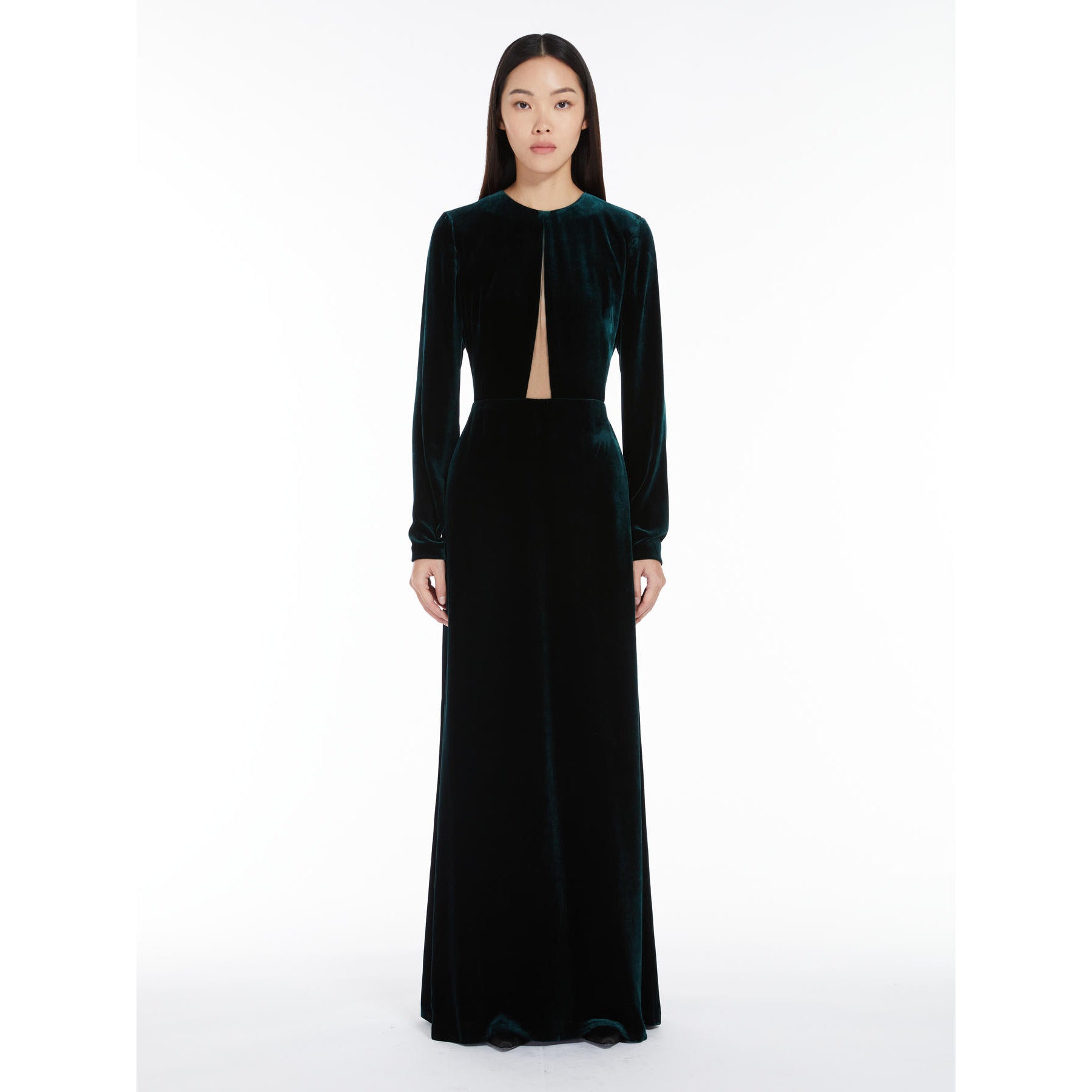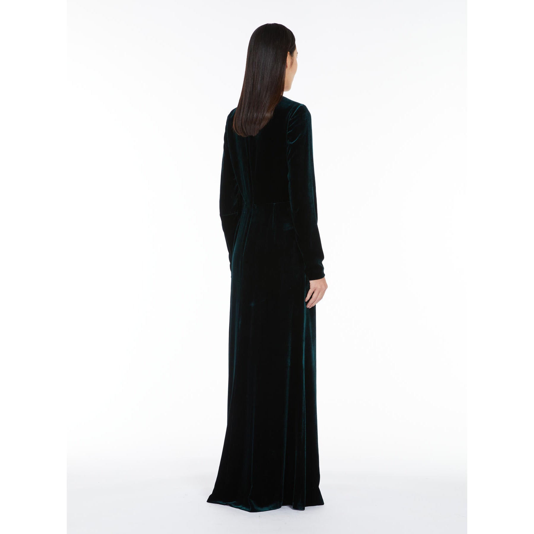 dark green long dress in sateen velvet